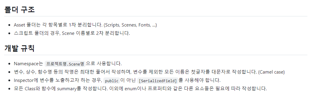 당시 작성했던 개발 규칙 일부