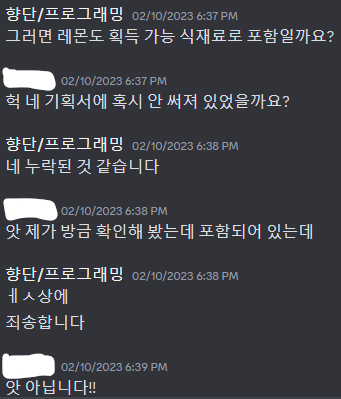 (다음 주차에 발생한 일이지만) 서로 아이템 목록이 맞지 않는다던가