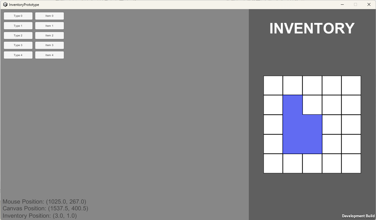 프로토타입 완성 당시에 인벤토리 크기가 정해지지 않았어서, 일단 5x5로 만들고 확장이 용이하도록 코드를 작성했다.