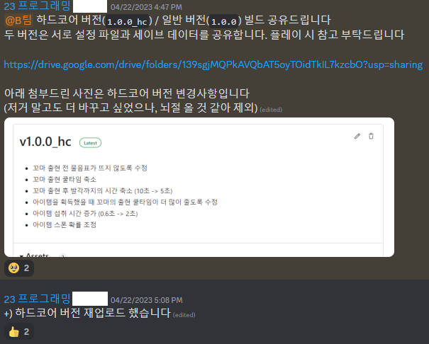 이후 'QA 과정에서 제거한 일부 부조리함을 넣자'라는 의견이 있어서, 부조리함을 적당히 넣은 하드코어 버전을 만들었다.