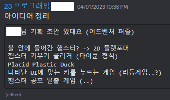 사실 이번 게임잼은 주제가 먼저 공개되어 있었다. '햄스터'였고, 기획자 분이 미리 기획을 해두셨었다.