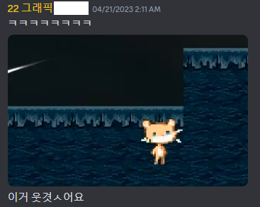 모르는 분들이 전부 그래픽이셨는데, 상당히 능력자셨다. 도트를 잘찍으시는 분도 있으셨고, 애니메이션 전공이신 분도 계셨다. '잘 활용하면 상당한 그래픽의 게임을 만들 수 있겠구나'라는 생각이 들었다. 잘 활용한다면.