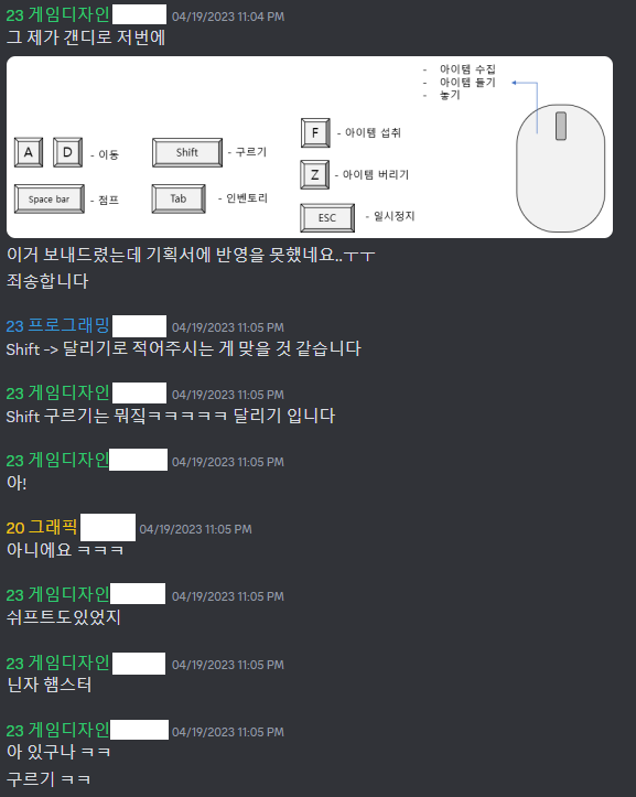 그래도 게임잼 자체가 같이 처음부터 끝까지 진행하는 것이다 보니, 아이디어 회의를 먼저 진행했다.