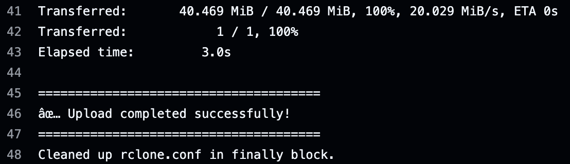 Write-Output "Cleaned up rclone.conf in finally block."