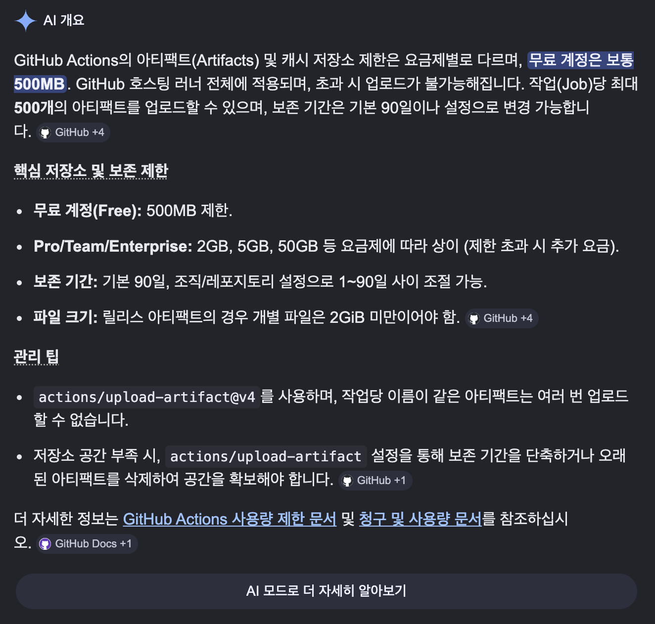근데 GitHub Artifacts의 기본 용량이 너무 적었다.